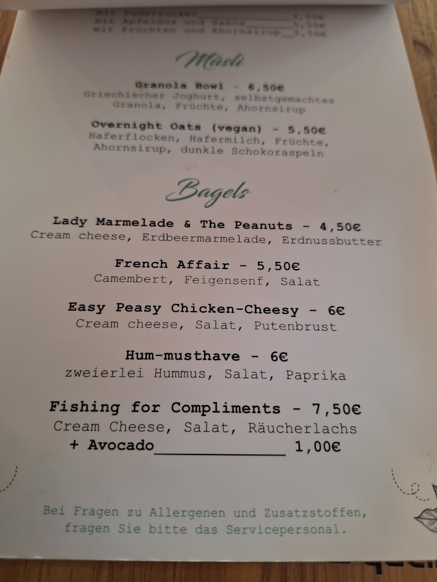 Leas Röstlaube boasts an appealing menu with a variety of offerings, but it's the homemade bagels and delectable cakes that truly steal the show. Imagine sinking your teeth into a perfectly crafted bagel, expertly paired with delicious homemade jam or rich peanut butter—each bite is an indulgence that promises to transport your taste buds to heaven, as one satisfied customer described it. And for those with a sweet tooth, the café’s selection of cakes is not to be missed; as stated by a regular visitor, “Die selbst hergestellten Kuchen und Gebäcke sind wirklich empfehlenswert.”